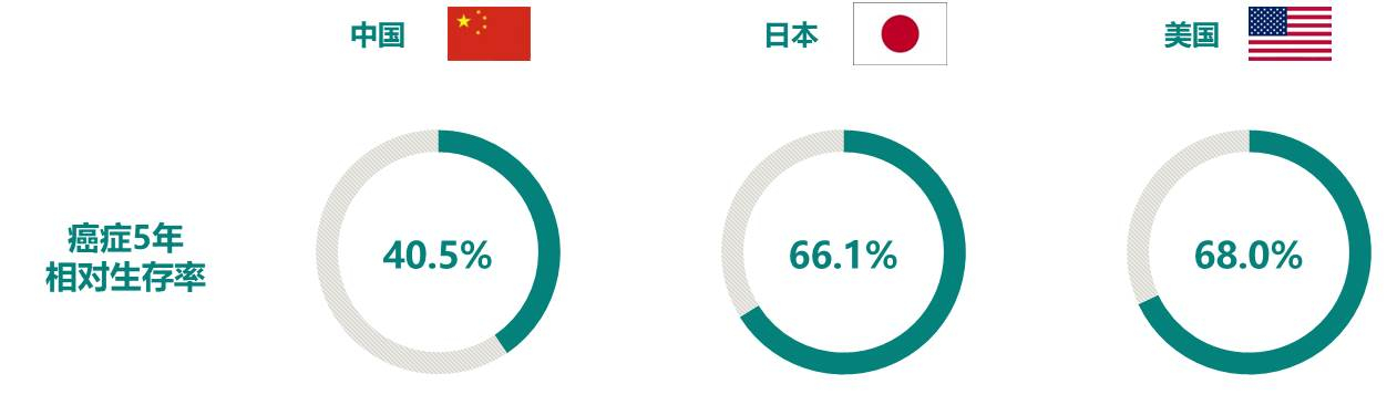 中日美全部癌症5年相对生存率比较